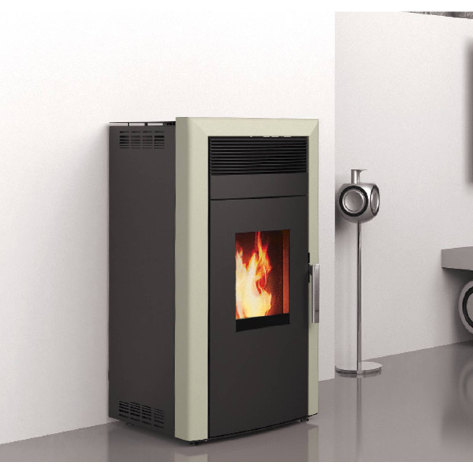 Côté esthétique : le modèle est bien ajusté. Son design moderne facilite une intégration harmonieuse dans tous les intérieurs. Son gabarit compact assure un gain de place, tout en disposant d’un réservoir à granulés de forte capacité (25 kg) pour plus d’autonomie (jusqu’à 21h).