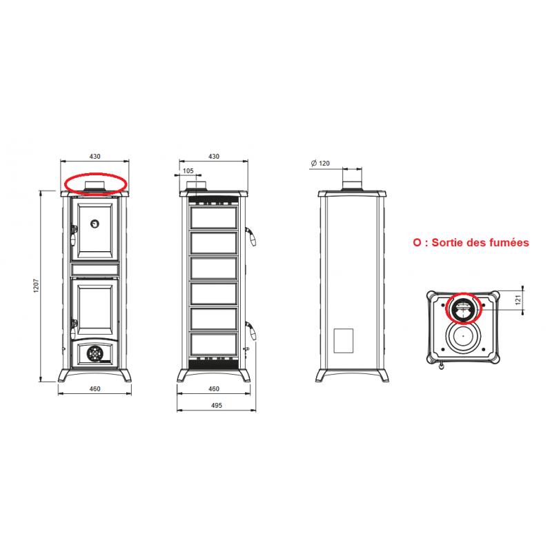 Schéma explicatif du Poêle à bois avec four – LA NORDICA Gemma Forno 5.0 Pierre 7.3 kW